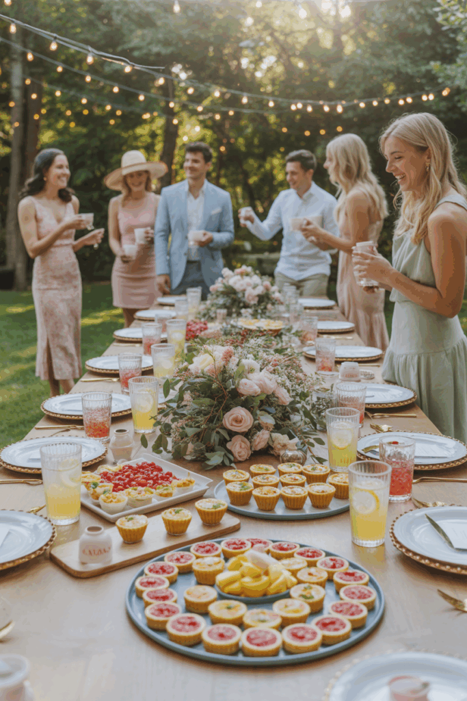 Notice the colorful drinks in large dispensers. This not only looks appealing but also keeps things simple. Guests can pour their own drinks, which saves time and keeps the party flowing. Having a mix of flavors, like fruity and refreshing options, ensures there’s something for everyone.