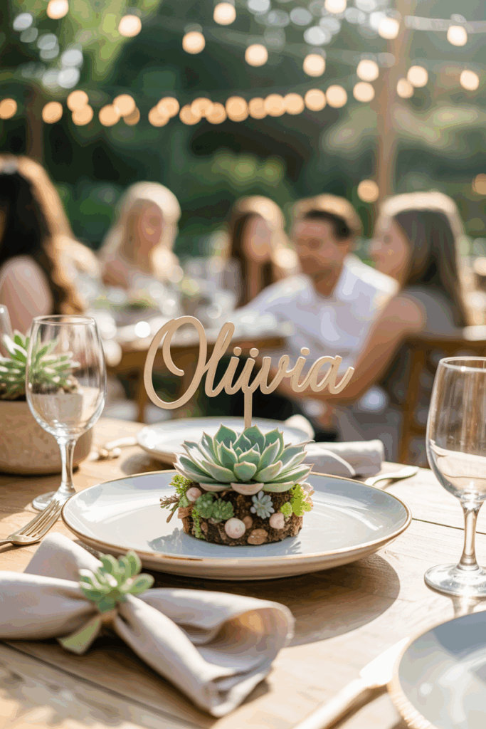 Don’t forget the tableware! Simple, elegant plates paired with gold chargers elevate the look. Each place setting can be personalized with a small touch, like a sprig of herbs or a handwritten name card. This little detail makes guests feel special and adds a personal touch to the gathering.