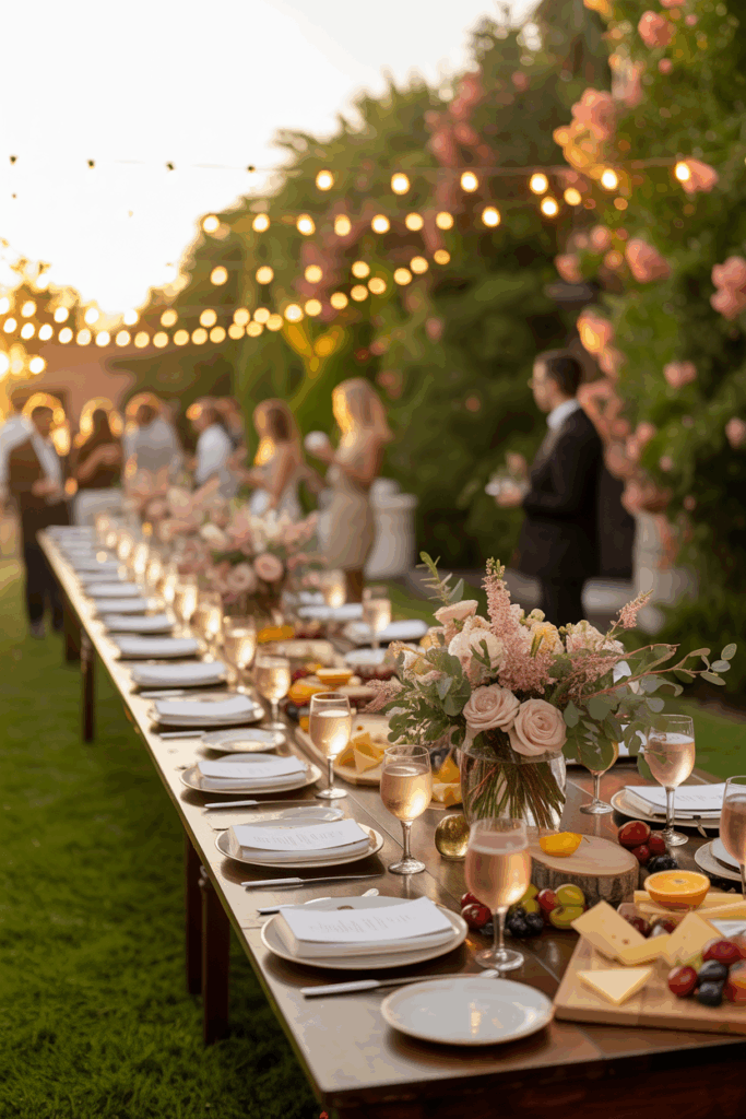 Consider incorporating similar elements into your own outdoor party. Simple touches like floral arrangements or wooden furniture can transform your space into a beautiful setting that everyone will enjoy.
