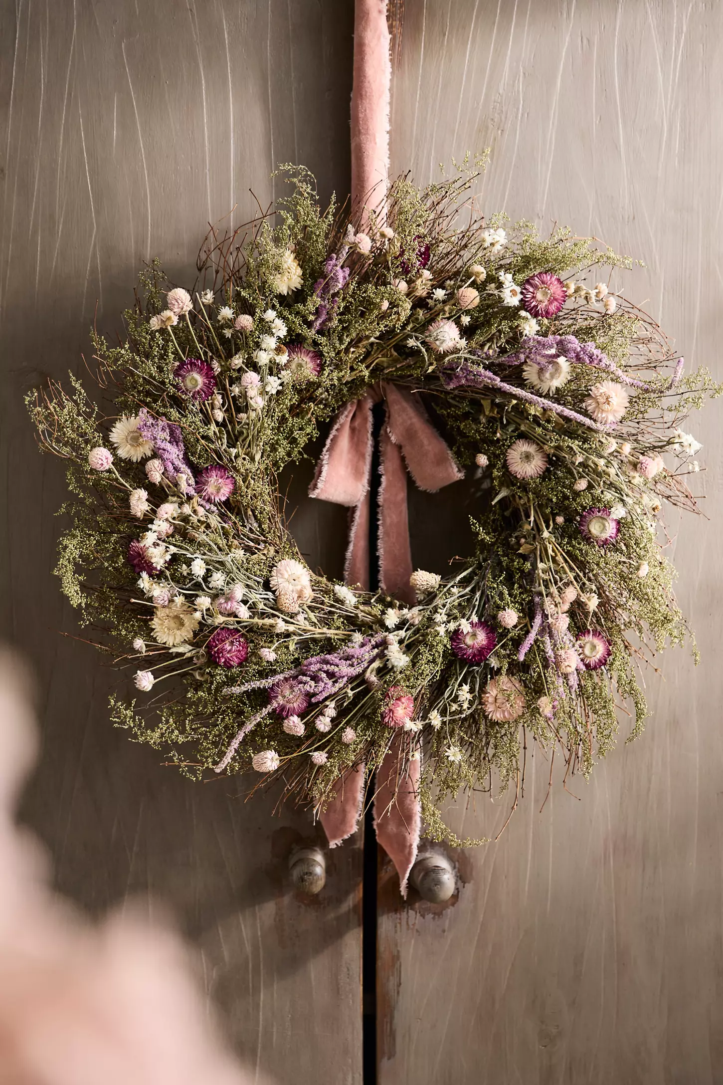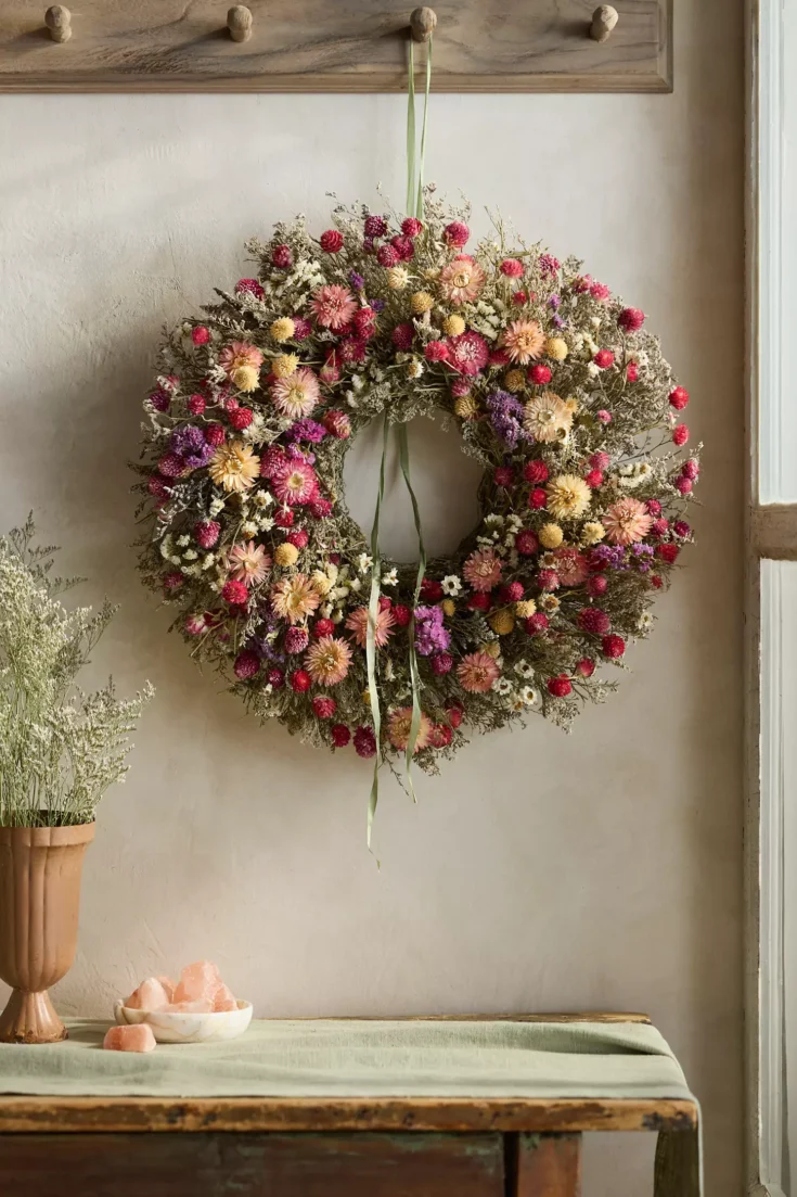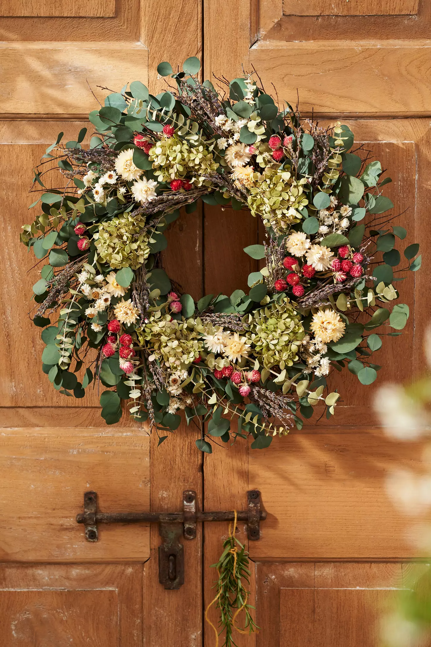 Whether you’re going for soft and romantic, bold and bright, or coastal and airy, this curated collection from Terrain has something for every style. Many of these wreaths are made with natural, preserved materials, making them a long-lasting and eco-friendly option for seasonal décor.