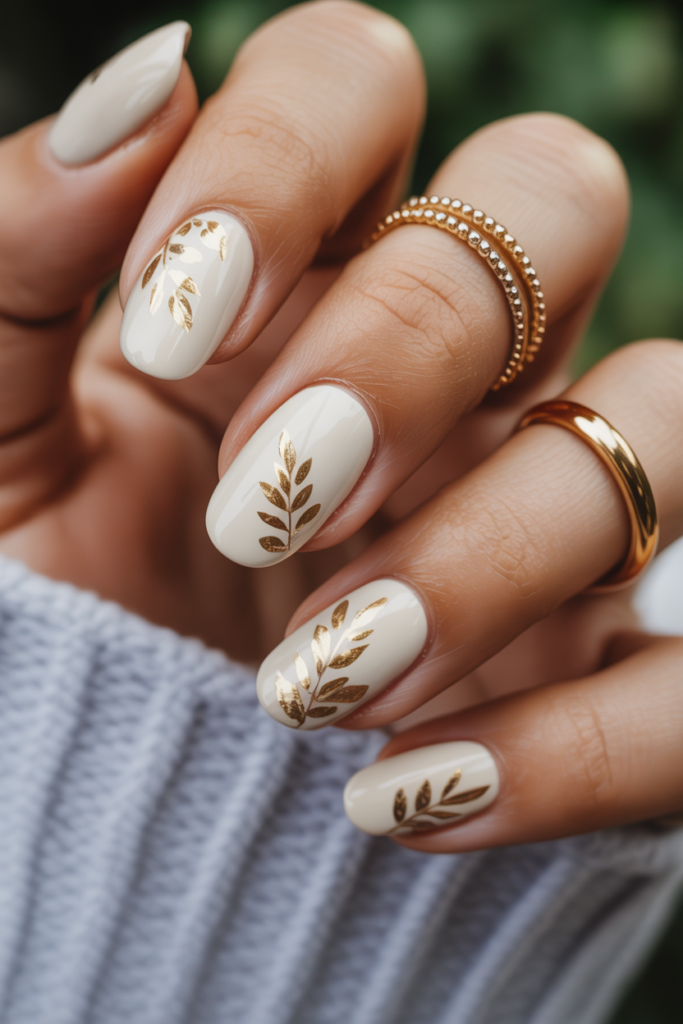This style pairs a soft, creamy white base with small gold foil accents. The gold adds a subtle shine without overpowering the look.