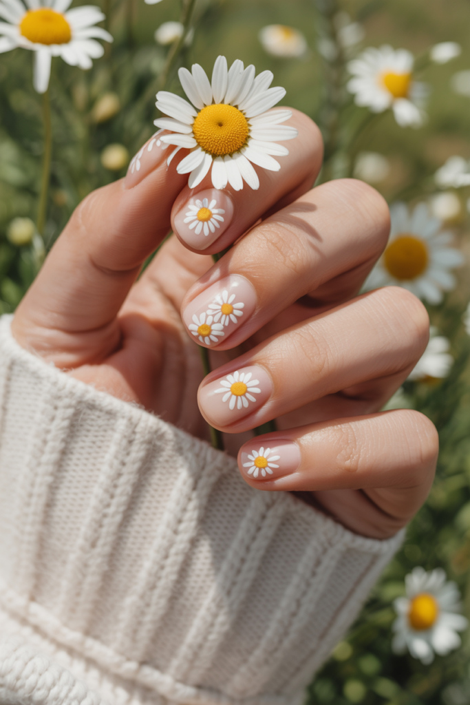 Daisy nail designs are simple yet charming. They often use soft colors with small white flowers to create a fresh spring look. These nails work well with both short and long nails, making them a versatile choice for many.
