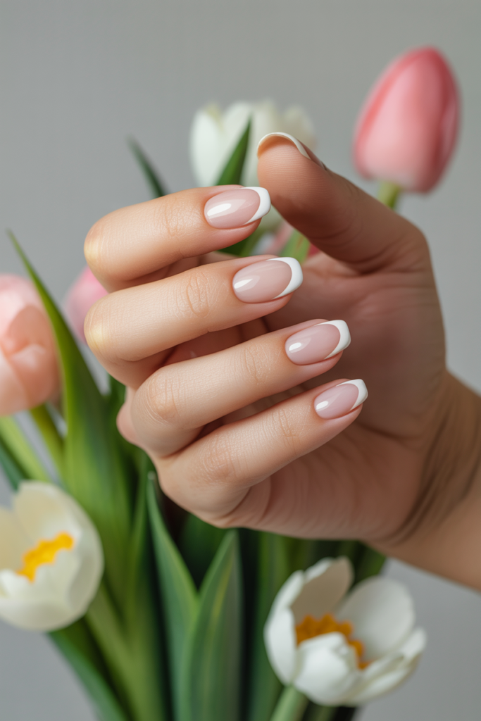 This style looks clean and subtle. It suits all nail shapes and works well with many colors, making it popular for spring.