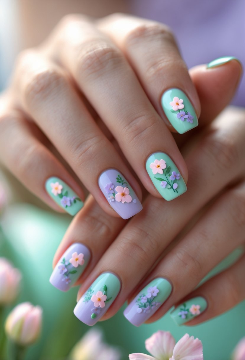Delicate floral designs give the nails a subtle charm without being too bold. This style works well for everyday wear and special events.