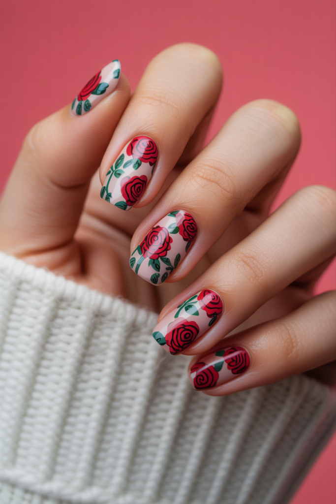 Bold red rose patterns make a strong statement for spring nails. They combine bright red shades with clear, detailed rose designs. This look suits those who want eye-catching nails without being too flashy. It works well for both casual and formal occasions.
