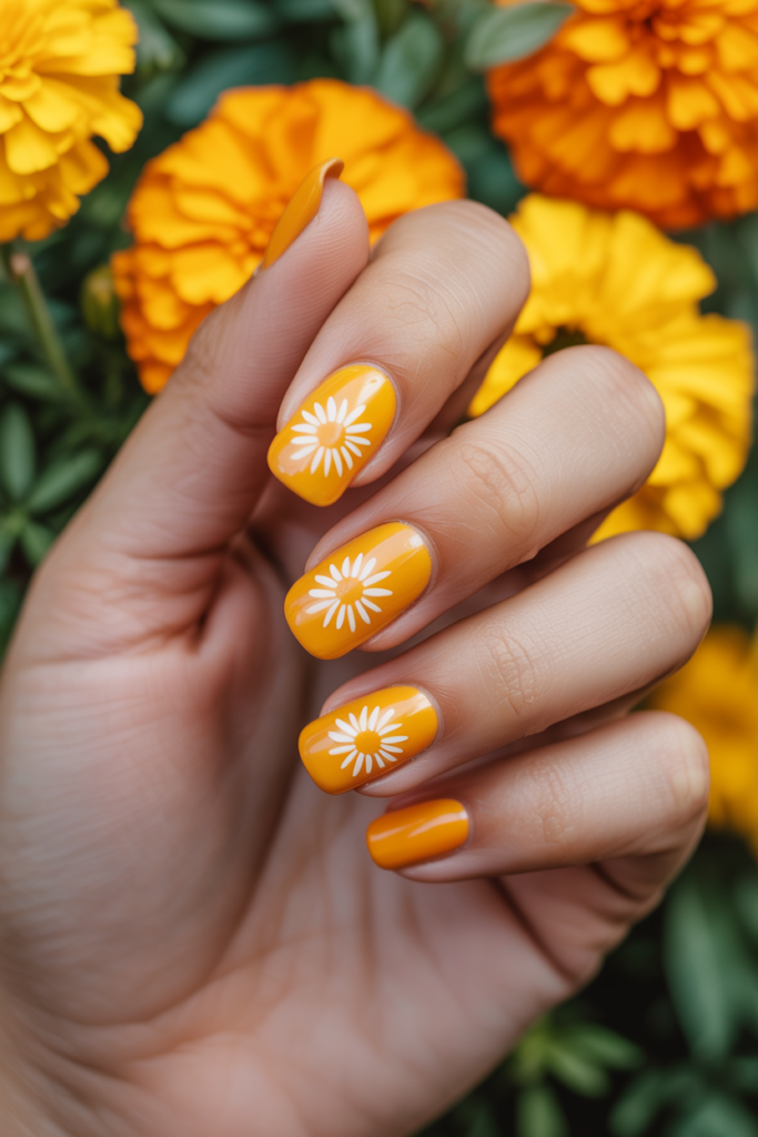 The bold colors make marigolds stand out. They bring a natural, lively touch to any manicure.