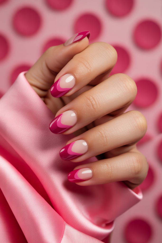 This design uses bright fuchsia as the base color with layered petal shapes on top. The petals add depth and a soft, artistic feel to the nails. It works well on almond-shaped nails, balancing bold color with delicate detail for a fresh spring look.