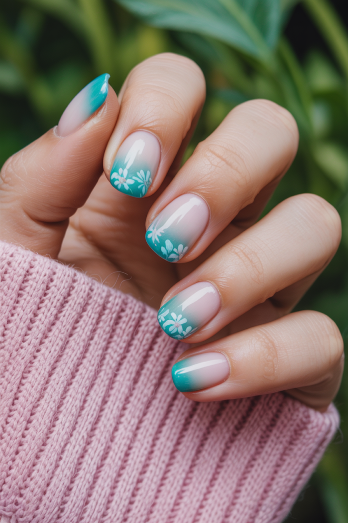 Gradient floral ombre combines soft color fades with delicate flower patterns. The colors blend smoothly, creating a gentle background for floral designs.