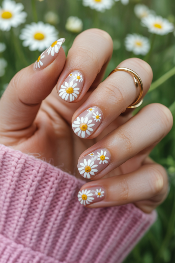 6) White Daisy Nail Art