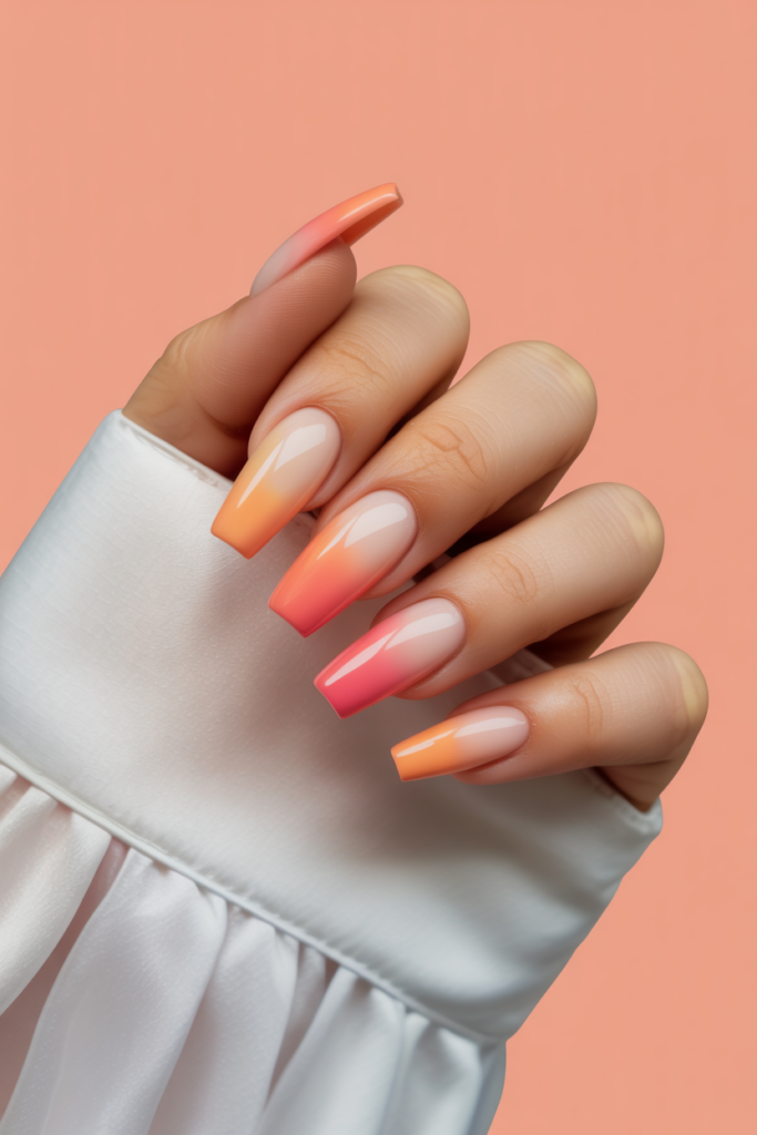 9) Peach and Coral Gradient Coffin Nails