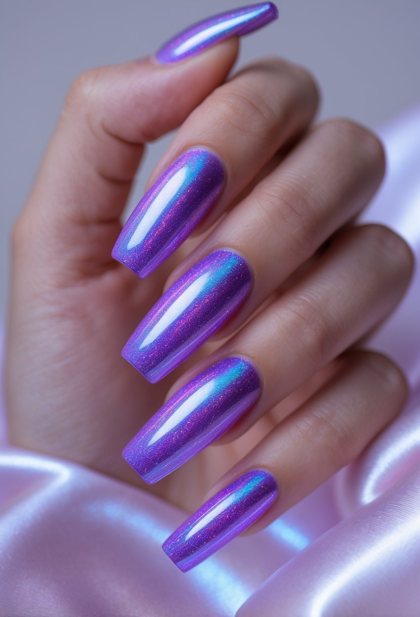 12) Purple Holographic Coffin Nails