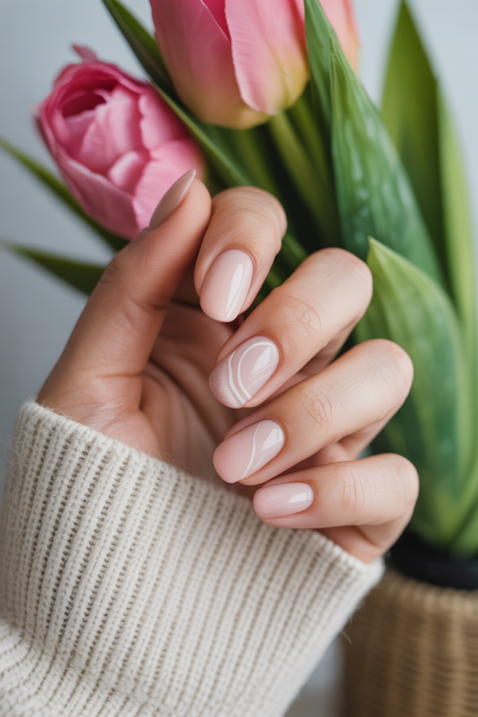 The neutral brown soap manicure combines soft brown tones with a glossy, translucent finish. It gives nails a clean and natural look while adding a subtle shine. This style fits well for spring, offering a modern, understated alternative to brighter colors.