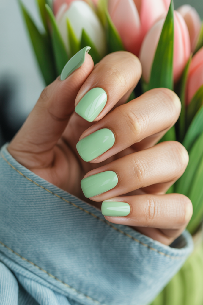 Mint green as a solid color offers a fresh, clean look perfect for spring. It suits many skin tones and works well on all nail shapes. This simple style provides a modern, polished finish without extra design.