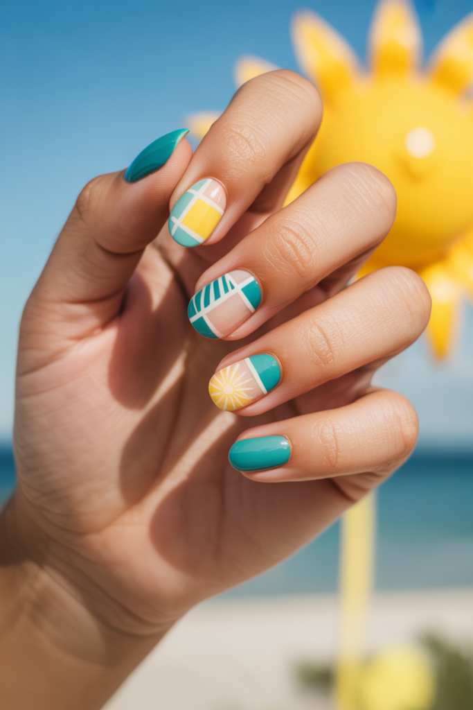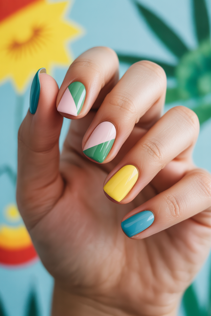 22) Color-Blocked Summer Nails