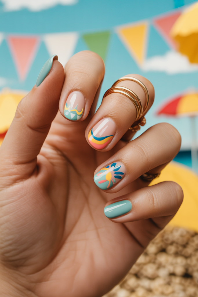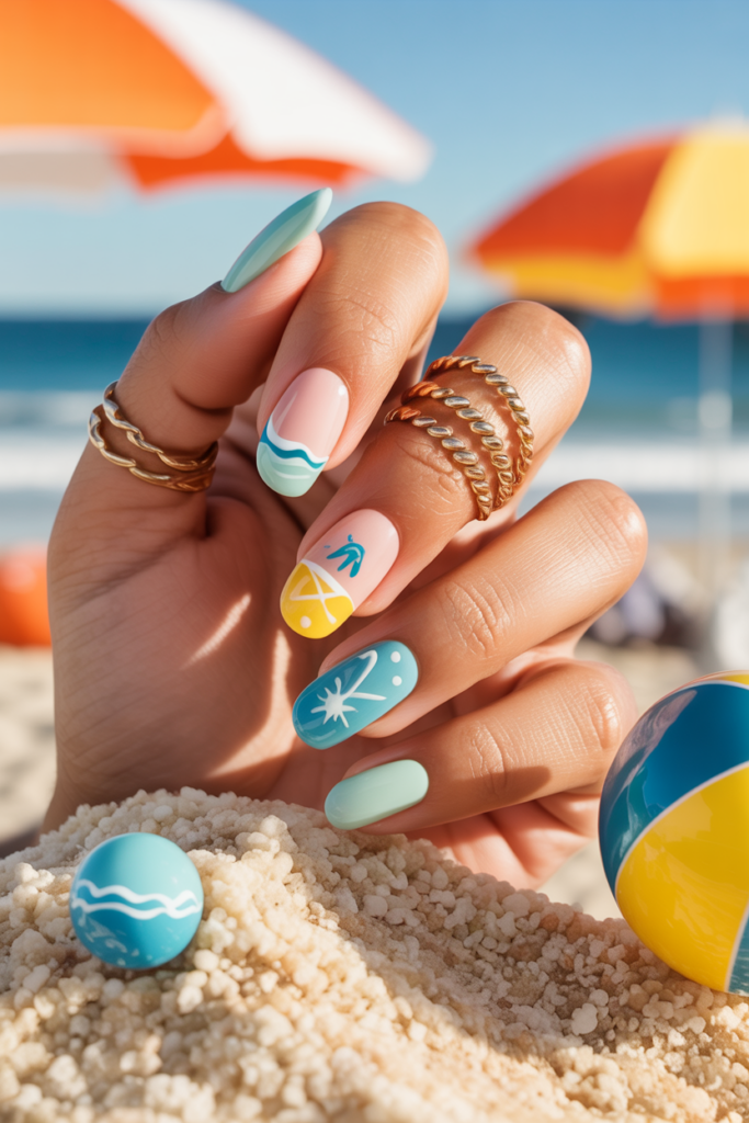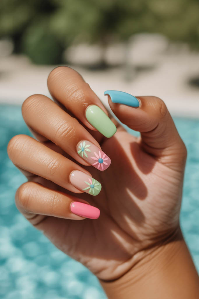 These nails bring a fresh, playful look. They work well for beach days and warm weather events.