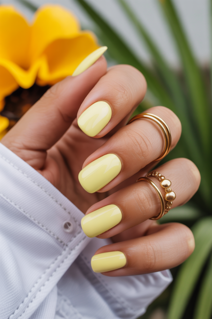Butter yellow is a soft, creamy shade that suits many skin tones. It offers a fresh, warm look perfect for summer days.