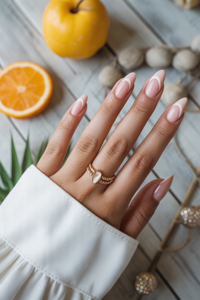 Minimalist nude tips offer a clean and simple look perfect for summer. They require less upkeep and match any outfit easily.