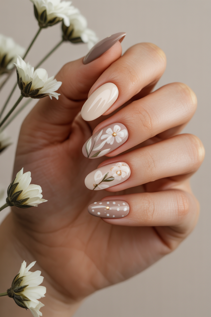Boho-inspired nails use soft, earthy colors like beige, taupe, and ivory. These neutral tones create a calm, natural look.