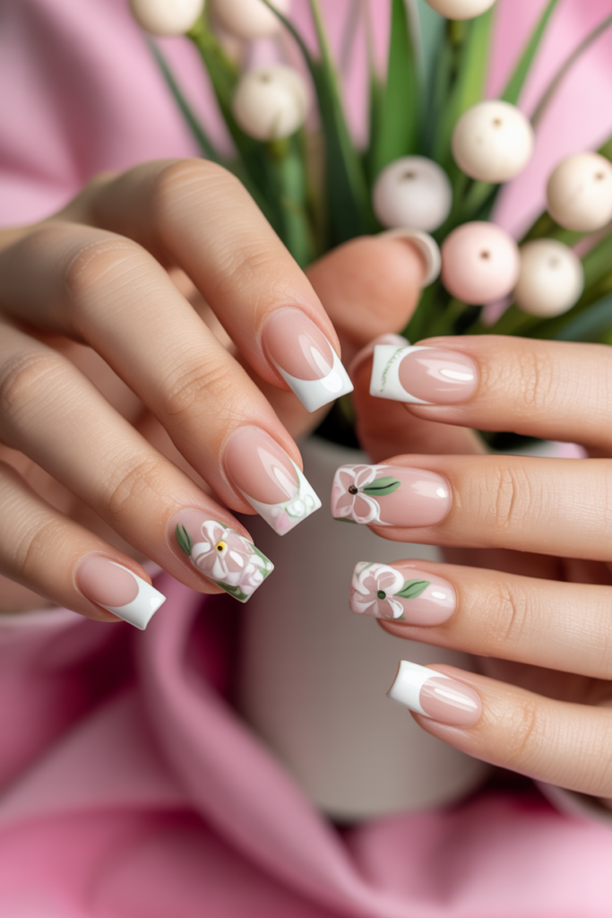 2) French Tips with Floral Accents