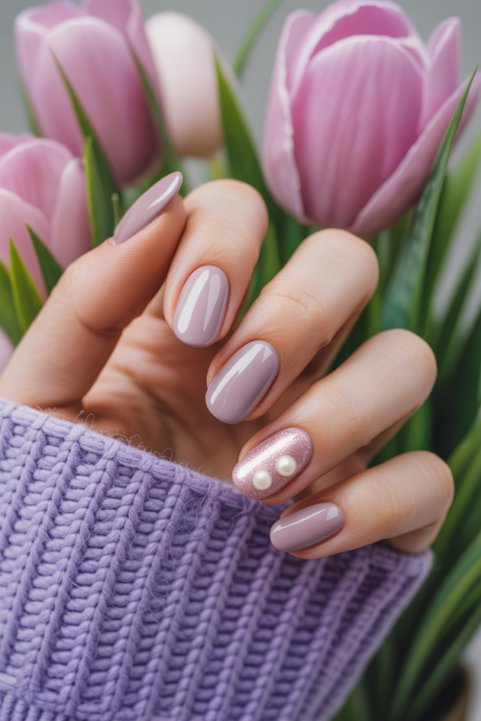 It adds shine without overpowering the gentle purple shade. Perfect for a fresh, polished look in spring.