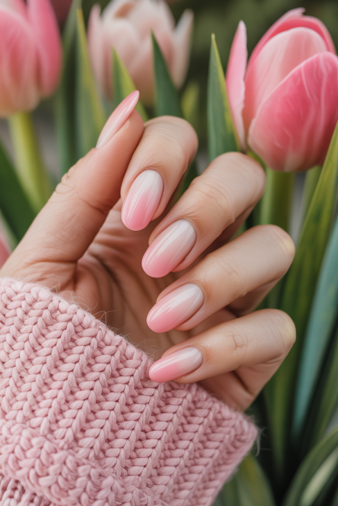 Pastel pink ombre blends soft pink shades with lighter hues for a smooth gradient. It creates a gentle, elegant look suitable for spring.