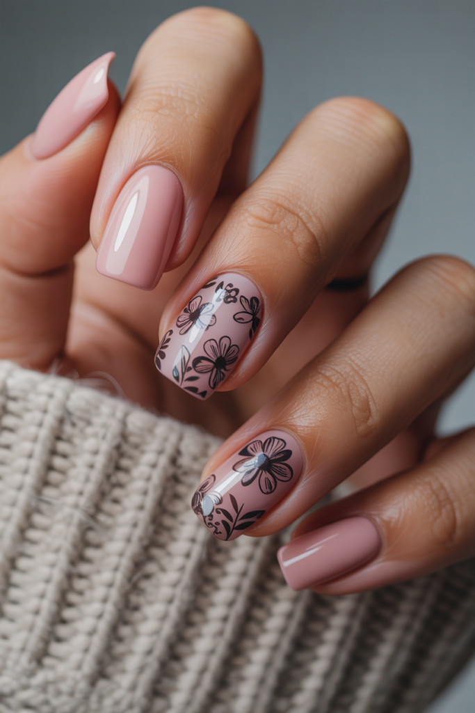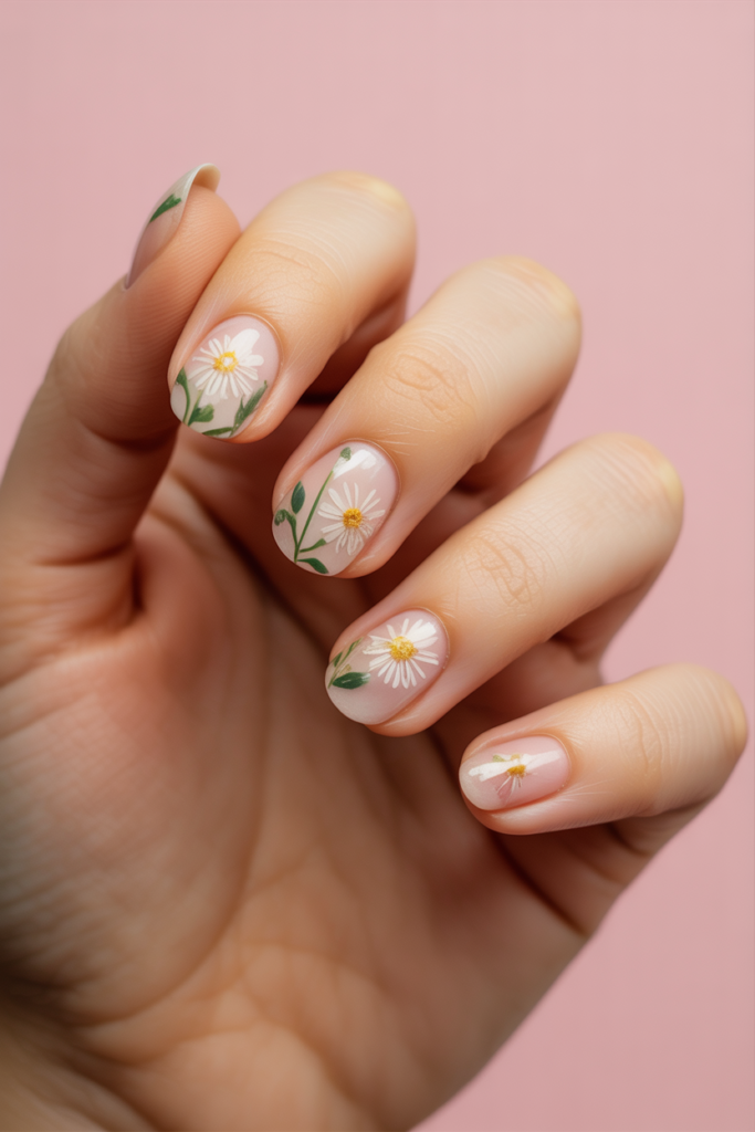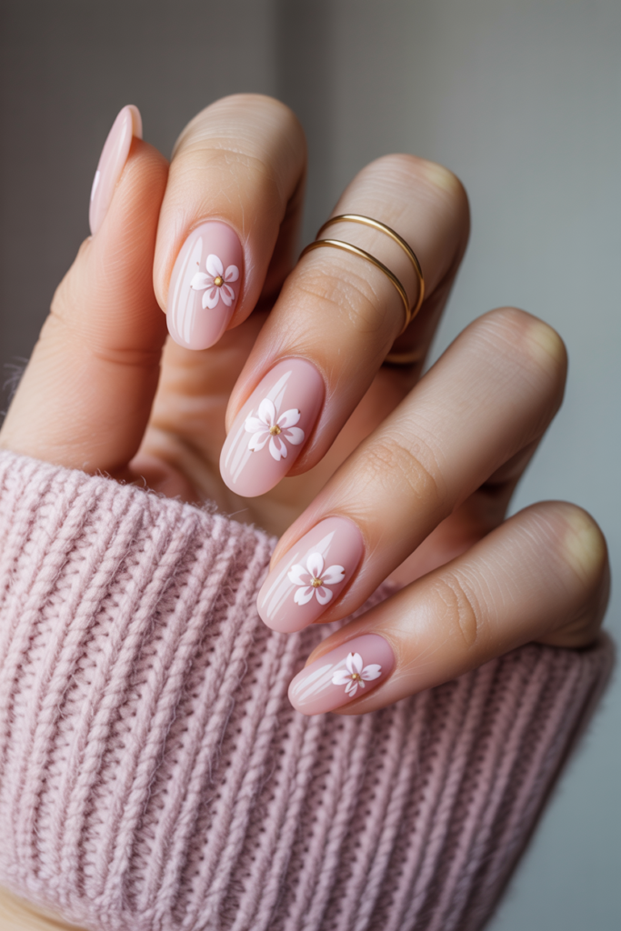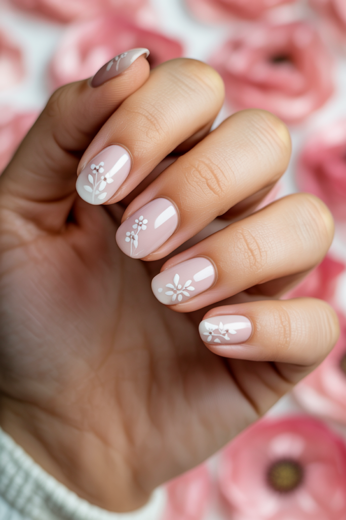 This look uses a soft blush pink base that feels fresh and gentle. The white floral accents add a delicate touch without overwhelming the nails. It suits anyone wanting a clean, elegant style perfect for spring.