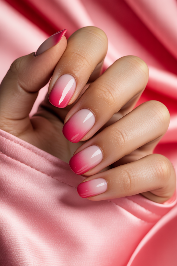 This style blends a soft light pink at the base with a rich deep rose at the tips. The smooth color shift adds depth without being too bold. It suits both casual and formal looks with a gentle, polished finish.