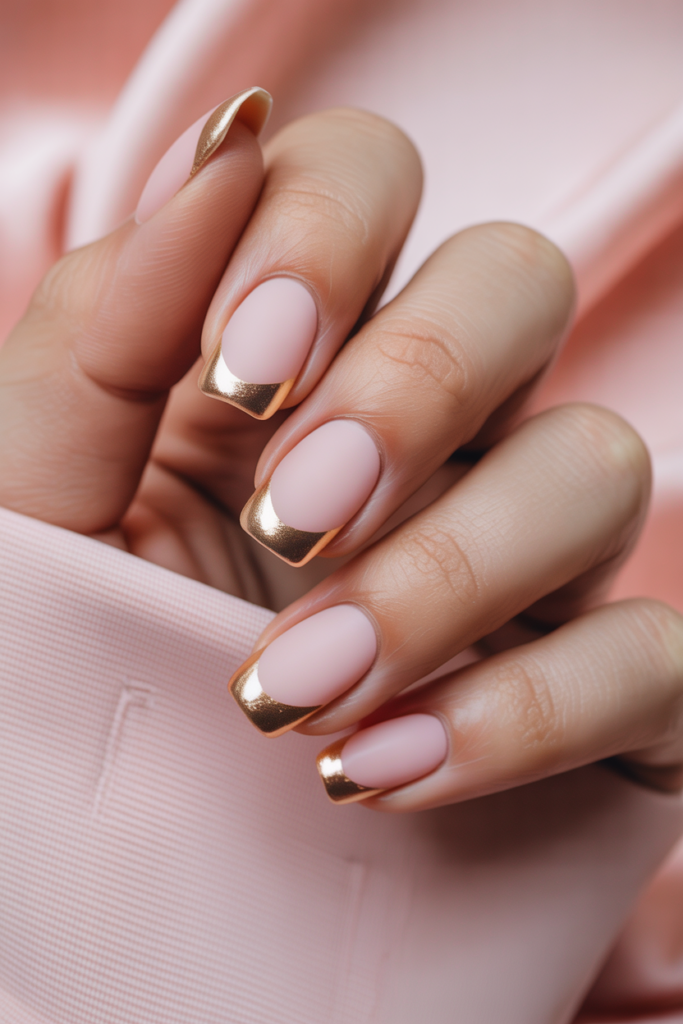 Gold foil is applied only to the tips, adding a subtle shine without being too flashy. It creates a balanced, refined look perfect for spring.