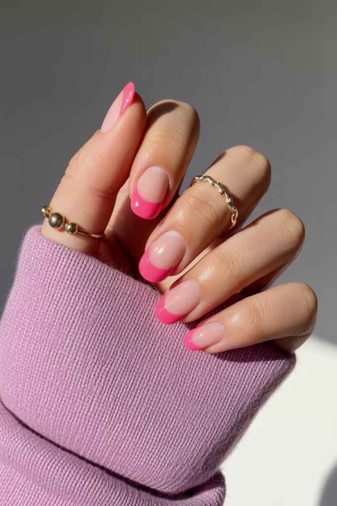This style updates the traditional French manicure by replacing the white tips with shades of pink. It can be soft baby pink or a brighter hue.
