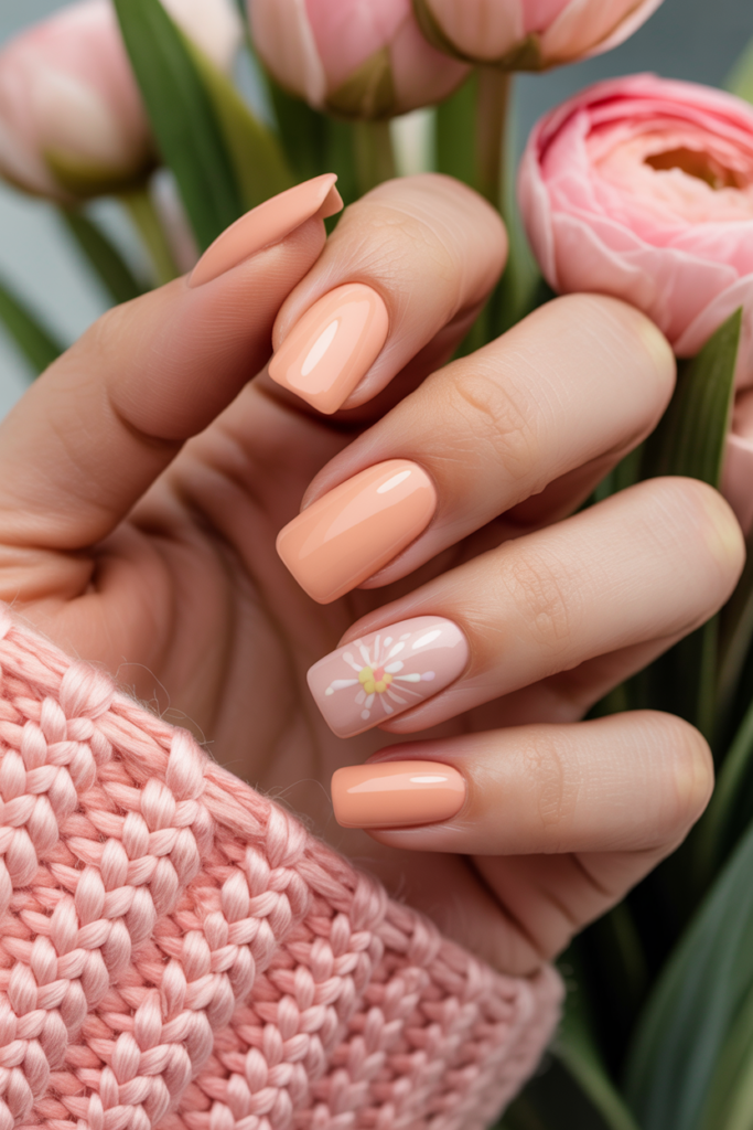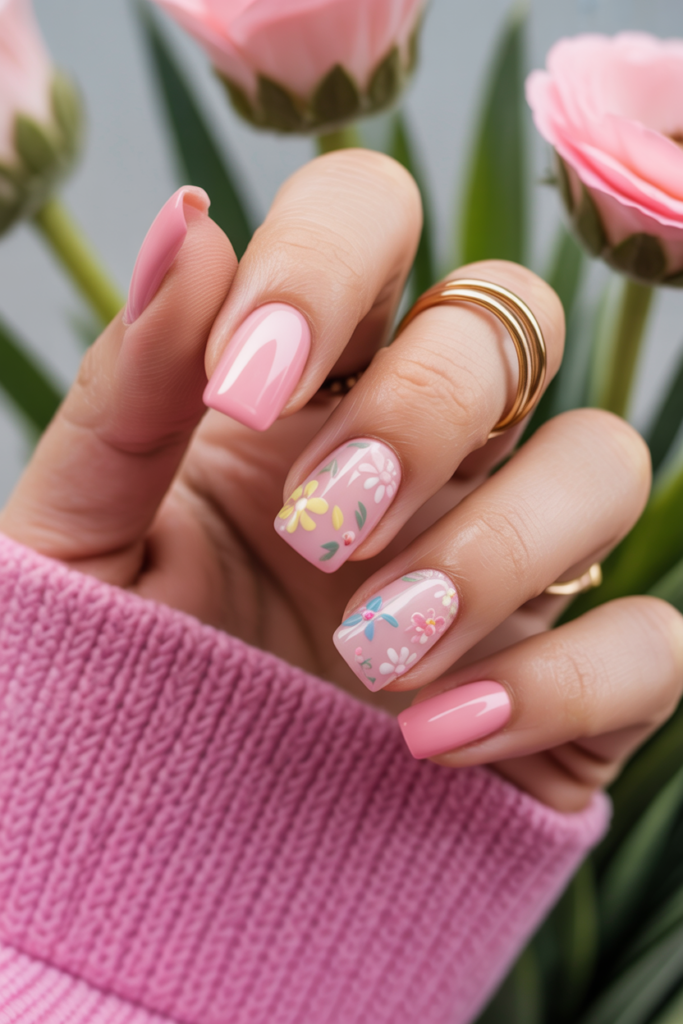 Floral accents on a few nails give a touch of nature without being too busy. This design works for both casual and special occasions.