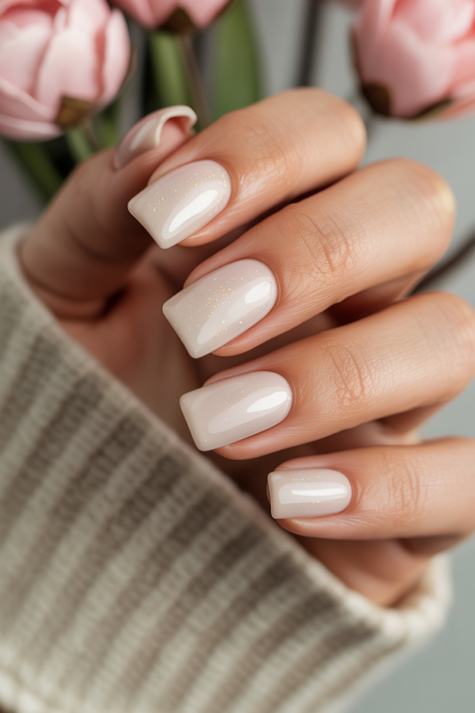 Adding subtle sparkle gives the nails a touch of shine without being overpowering. It works well for daily wear or special occasions.