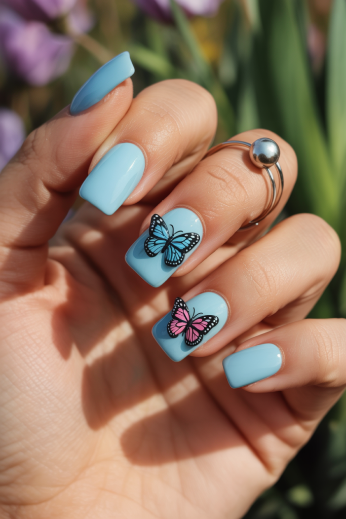 3D butterfly accents on a few nails create a delicate, textured look. They add elegance without being too bold. This style works for many occasions.