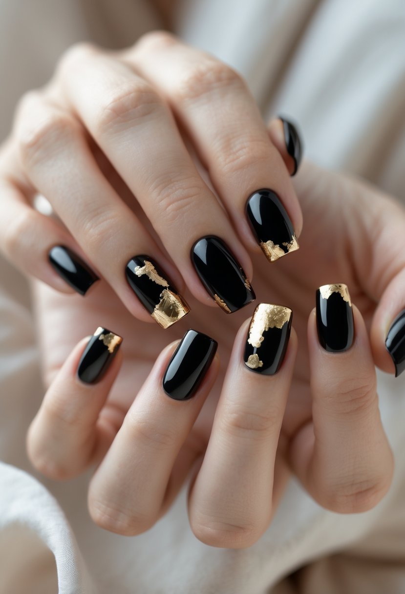 This style uses a strong black base with gold foil accents for a sleek look. The gold foil adds shine without overwhelming the bold black.