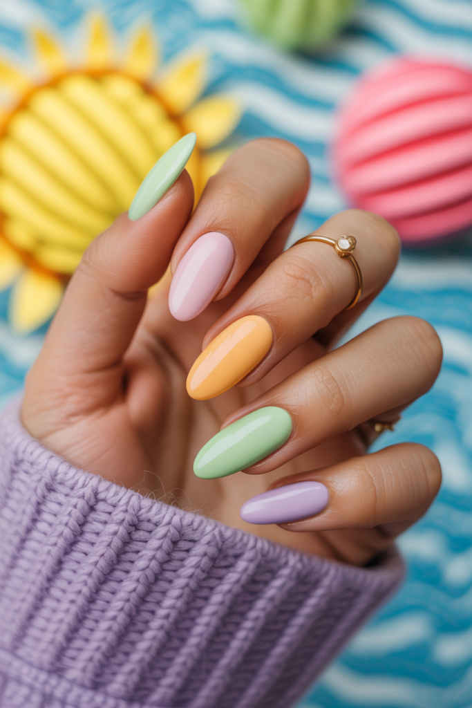 4) Almond-shaped pastel nails
