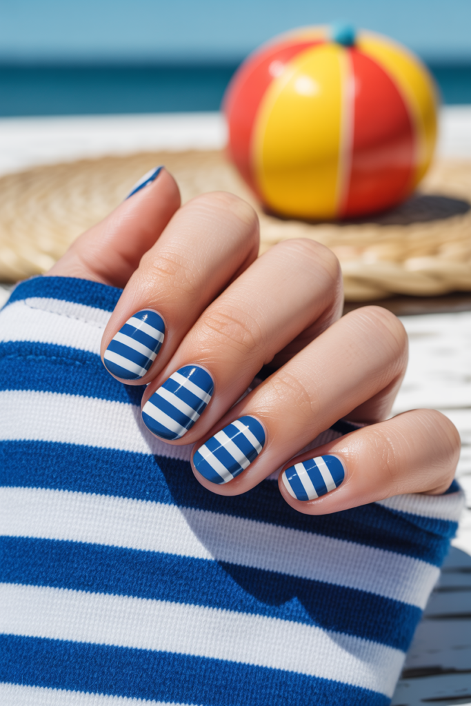 Adding small details like anchors or gold accents can give the nails a subtle, nautical touch.