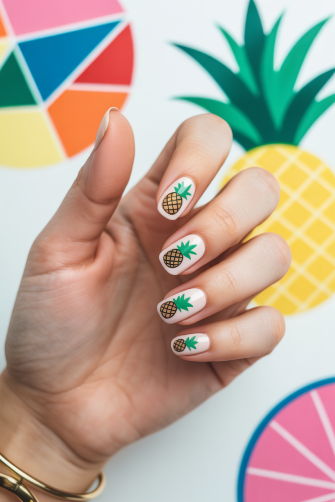 Mini pineapple decals add a subtle touch of summer to nails. They work well on short or clear nails, keeping the look neat and fresh.
