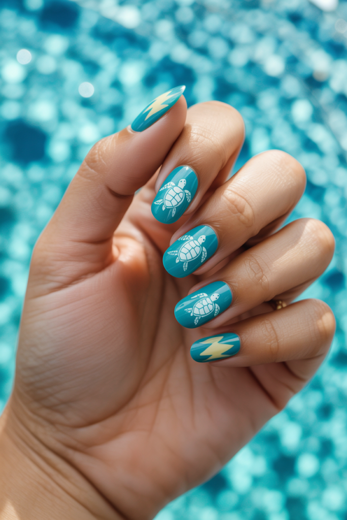 Sea turtle nail stickers add a calm, beachy vibe to any manicure. They are easy to apply and come in various styles, from detailed turtles to simple outlines. These stickers work well for vacation looks and pair nicely with ocean-themed colors.