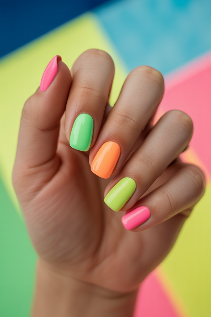 It works well for vacation, giving nails a colorful pop without being too over the top. Neon hues bring energy and fun to any summer outfit.