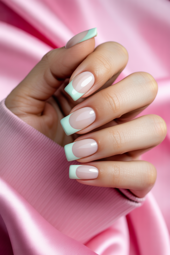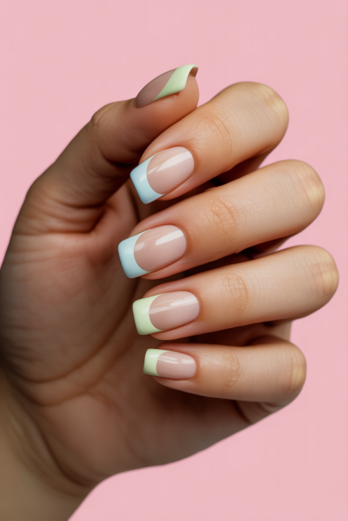 This style updates the traditional French manicure by using soft pastel colors instead of white tips. It adds a fresh and subtle look perfect for spring.
