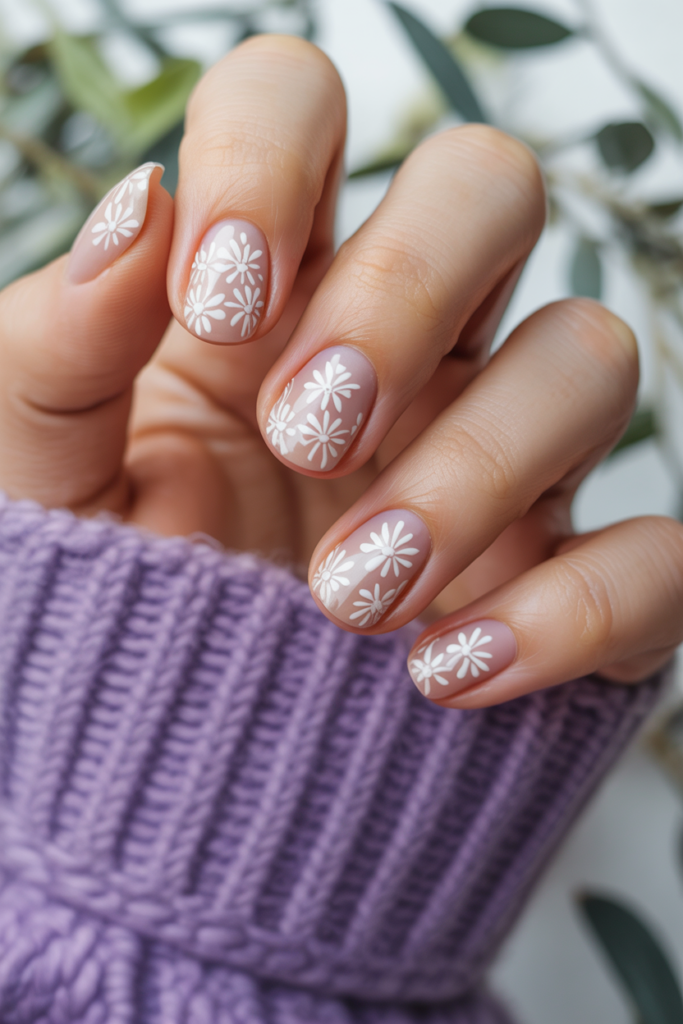 Delicate white floral nail art offers a soft, elegant look for spring. The designs are often minimal, featuring fine flower details over solid or sheer white bases. This style works well for everyday wear and special events like weddings. It gives nails a fresh, clean appearance without being overpowering.