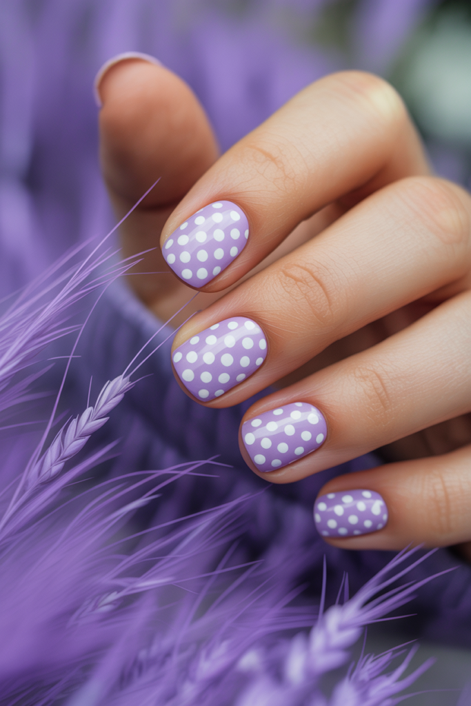 This design uses a soft lavender color as the base. White polka dots add a playful and clean look.