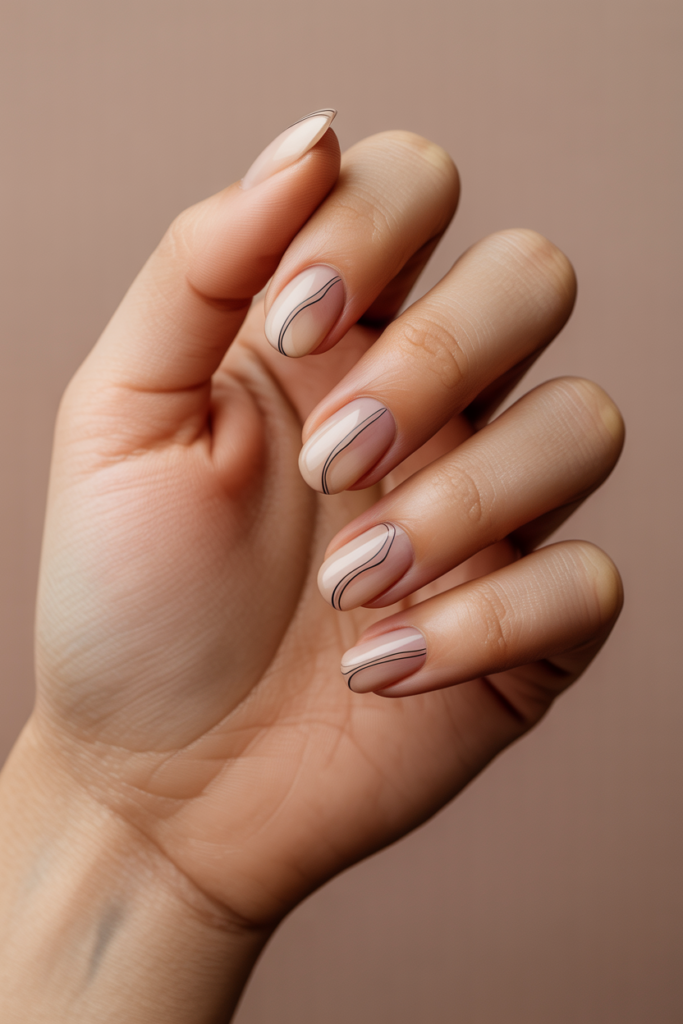 This style uses a soft nude base that fits well with many outfits. Thin, clean lines are added on top for a simple, modern look. It is subtle but adds a touch of elegance without being too bold.