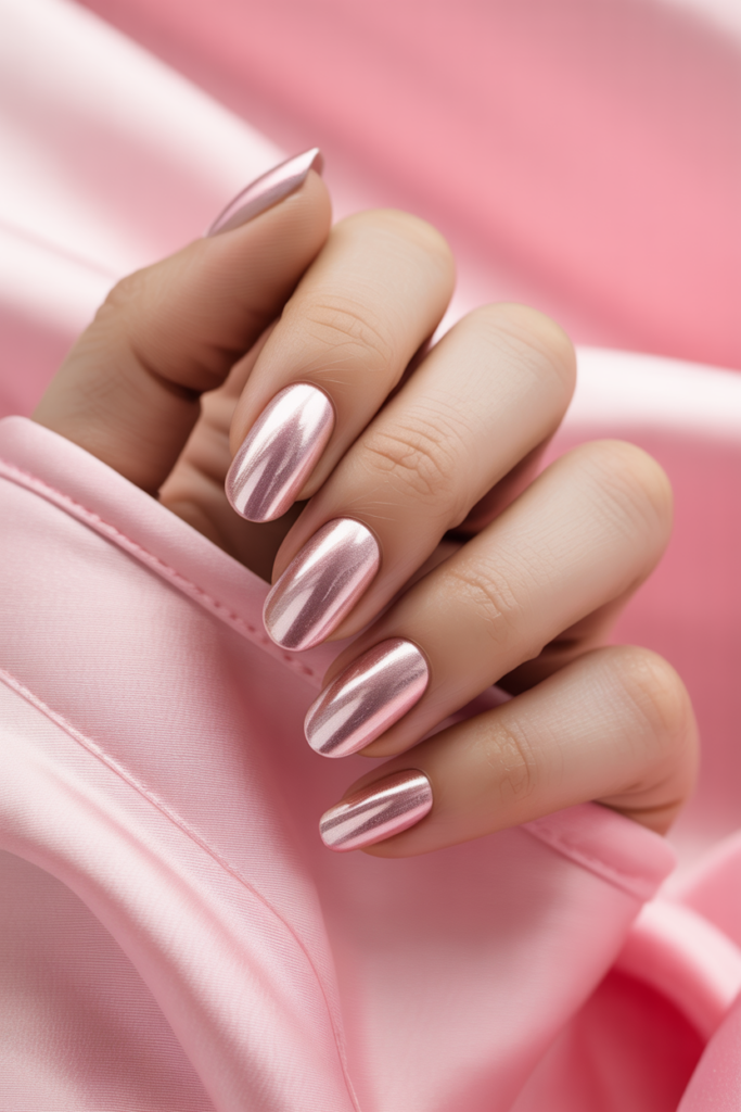 2) Chrome metallic nails in soft pink