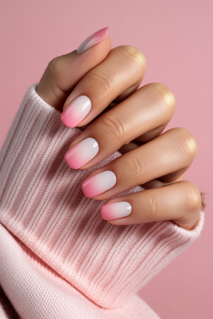 This style blends soft pink shades from light to darker tones on the nail tip. It creates a smooth gradient that looks simple and elegant.