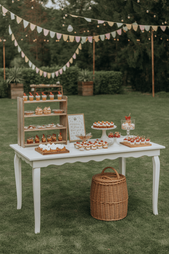 Setting up an interactive dessert station can turn any outdoor party into a fun and memorable experience. Imagine a vibrant table filled with colorful treats and a playful sign that reads ‘Hammer Dessert Station.’ This catchy title adds a lighthearted touch, inviting guests to dig in and create their own sweet masterpieces.