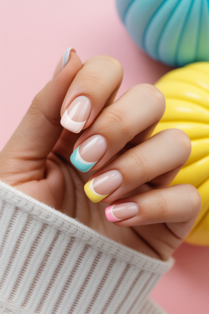 This style updates the traditional French manicure by using soft pastel shades instead of white tips. Shades like baby blue, lavender, or soft pink add a gentle, modern touch.