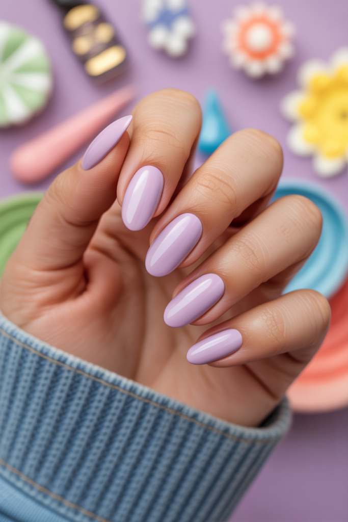 Soft lilac on almond nails offers a calm, elegant look. The color is subtle but adds a fresh touch to summer styles. This shade works well for both short and long nails, keeping the design simple yet trendy.