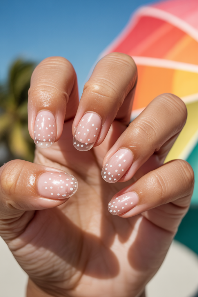 Clear gel nails offer a clean, fresh look perfect for summer. Adding tiny white dots creates subtle detail without overwhelming the design. This style suits any occasion and blends well with other summer nail trends. It is simple, elegant, and easy to maintain.