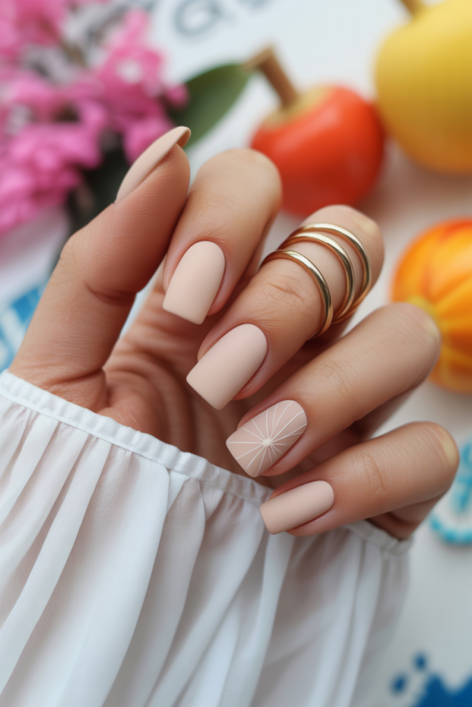 Matte nude square nails offer a clean and modern look. They blend simplicity with subtle elegance, perfect for summer. The matte finish softens the nude tone, making it less shiny but still stylish. This style suits many occasions, from casual days to work settings.
