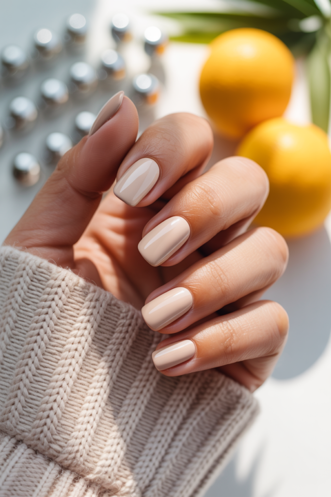 This style combines a neutral beige base with a shiny, glossy top coat. It creates a clean and polished look that suits many occasions. The glossy finish adds subtle brightness without being too flashy. It is a simple way to keep nails elegant in the summer.